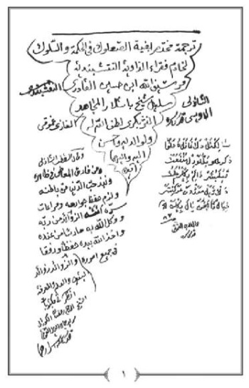 - Заглавие (центр): Мухтасар «Бугйат ас-са‘люк фи-ль-хикма ва-с-сулюк» — «Стремление бедняка в мудрости и тарикате», написанная слугой мюридов накшбандийского и шазилийского тарикатов Мир-Сайфуллой ибн Хусайном аль-Кадири, аль-Шазили, внуком шейха Башлара ан-Ницовкри.